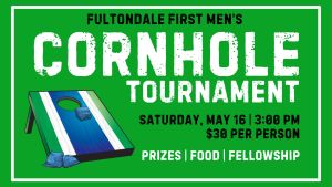 MENS’ CORNHOLE TOURNAMENT – Men, join us for a Cornhole Tournament packed with friendly competition and great fellowship! Entry is $30 and includes food, fun, and the chance to win some awesome prizes. Bring a friend and come ready for a great time at 3:00 PM! Register today!